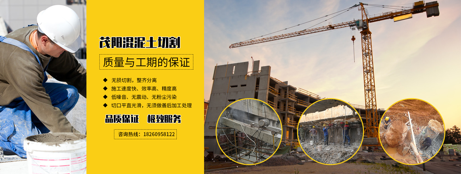 廣西茂陽(yáng)建筑工程有限公司成立于2014年,發(fā)展至今現(xiàn)有員工153人,是由一批專業(yè)高效的技術(shù)團(tuán)隊(duì)組成的工程公司,擁有注冊(cè)資本1000萬元,年施工能力1500萬元以上。目前有20臺(tái)繩鋸切割機(jī),3臺(tái)馬路碟鋸機(jī),8臺(tái)水鉆機(jī),3臺(tái)風(fēng)炮機(jī),2臺(tái)挖機(jī),23臺(tái)鉆孔機(jī)。茂陽(yáng)主要服務(wù)項(xiàng)目有鋼筋混泥土切割,水下切割、加固、植筋、鉆孔、補(bǔ)強(qiáng)、切割加固、房屋切割加固/破碎拆除、橋梁切割加固/破碎拆除、建筑切割加固/破碎拆除等特種工程......